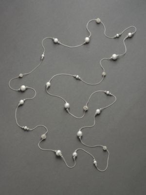 The perfect thing to bring out your dazzling personality--wear it long and sexy, or double it up to enhance your neckline. Long silver-plated necklace features fireball beads (8 mm) with sparkling The perfect thing to bring out your dazzling personality--wear it long and sexy, or double it up to enhance your neckline. Long silver-plated necklace features fireball beads (8 mm) with sparkling glass crystal stones and beads with diamond dust (10 mm).