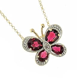 Vermeil Genuine Garnet and Diamond Butterfly Pendant Necklace