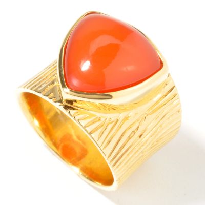 ShopNBC-925 Fusion Orange or Green Chalcedony Trillion Textured Ring